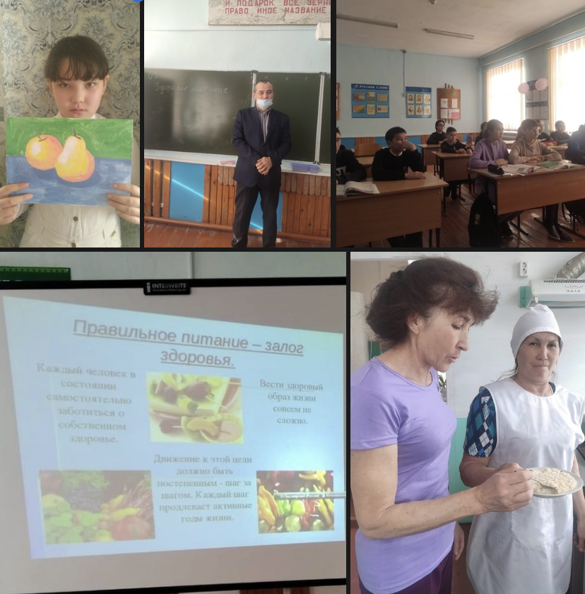 На уроках биологии, самопознания школьникам были показаны видеоролики по пропаганде культуры ЗОЖ, проводилась выставка рисунков "Овощи и фрукты - полезные продукты".