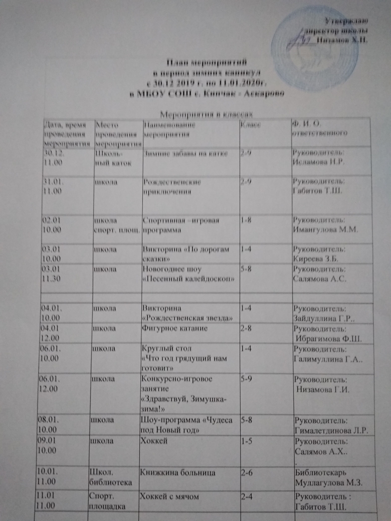 План на зимние каникулы