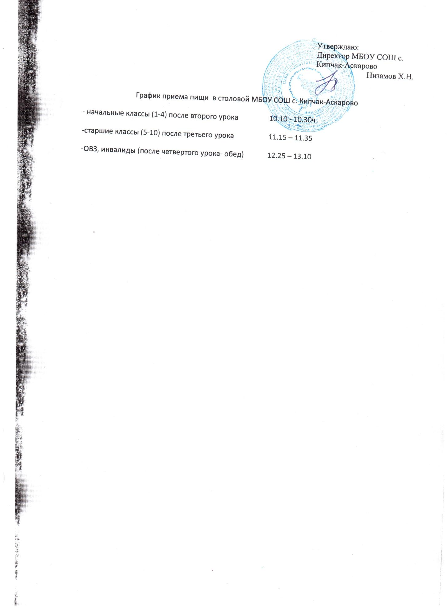 Информация об условиях питания обучающихся МБОУ СОШ с.Кипчак-Аскарово, в том числе инвалидов и лиц с ограниченными возможностями здоровья.