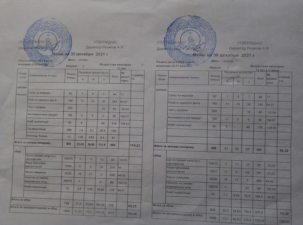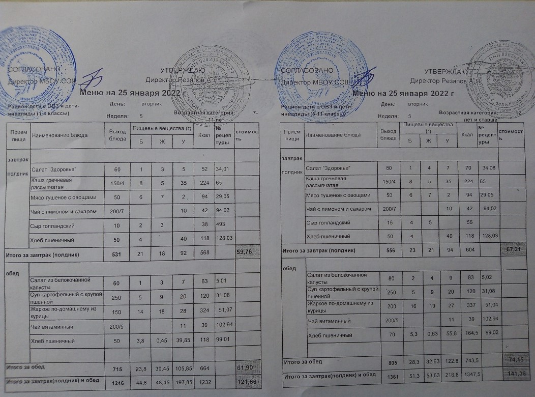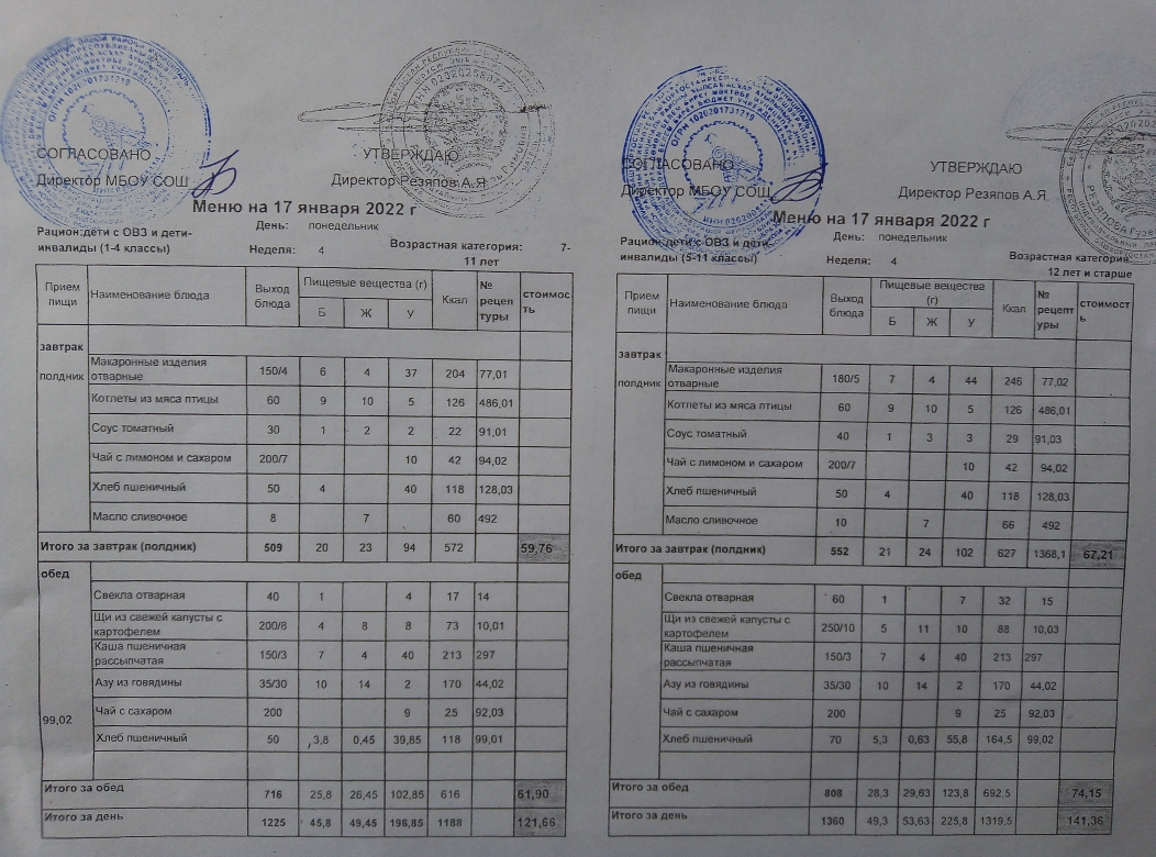 Меню на октябрь дети с ОВЗ и дети-инвалиды