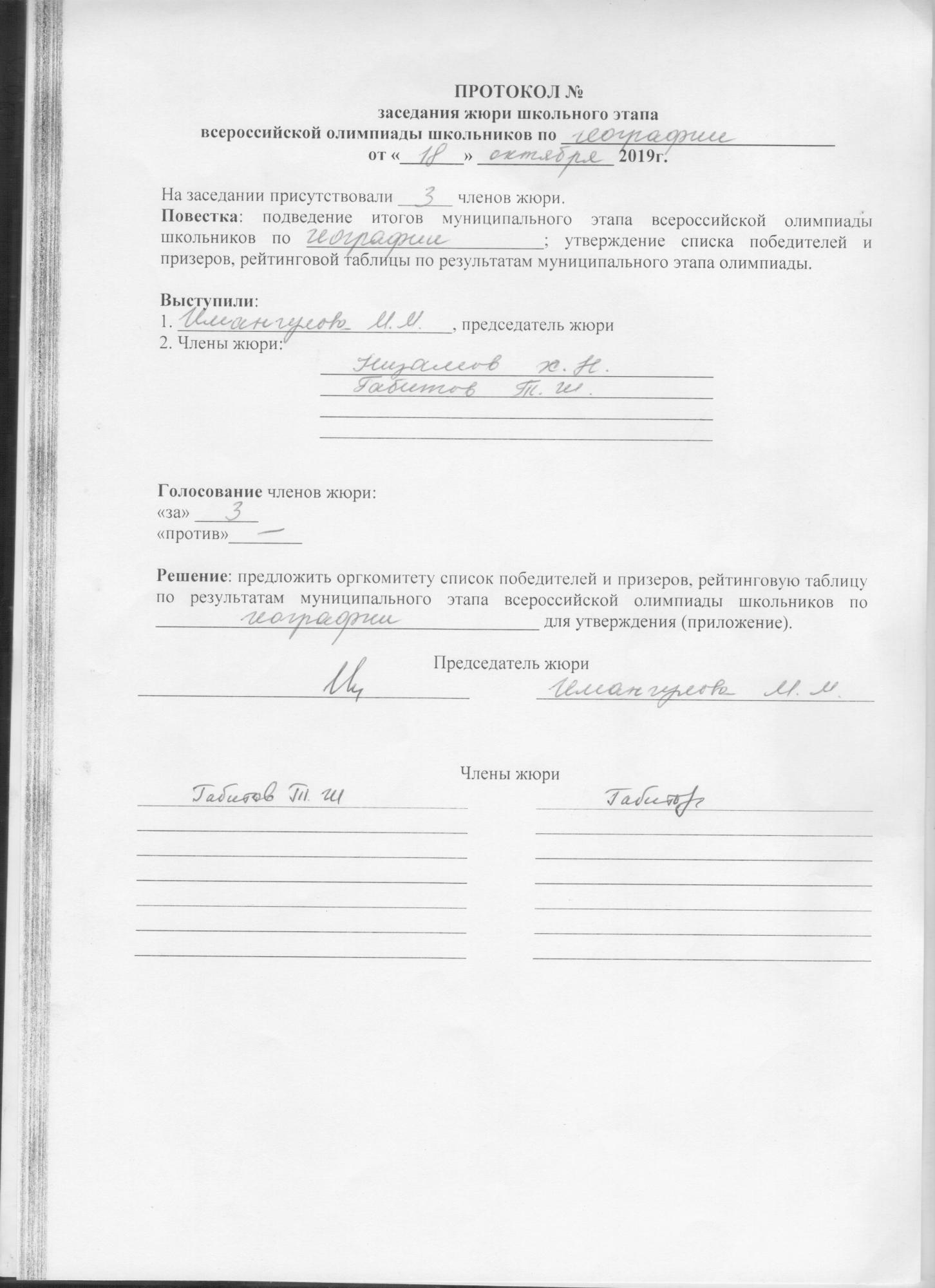 Протокол заседания жюри по Географии , МБОУ СОШ с.Кипчак-Аскарово, 2025 уч.год