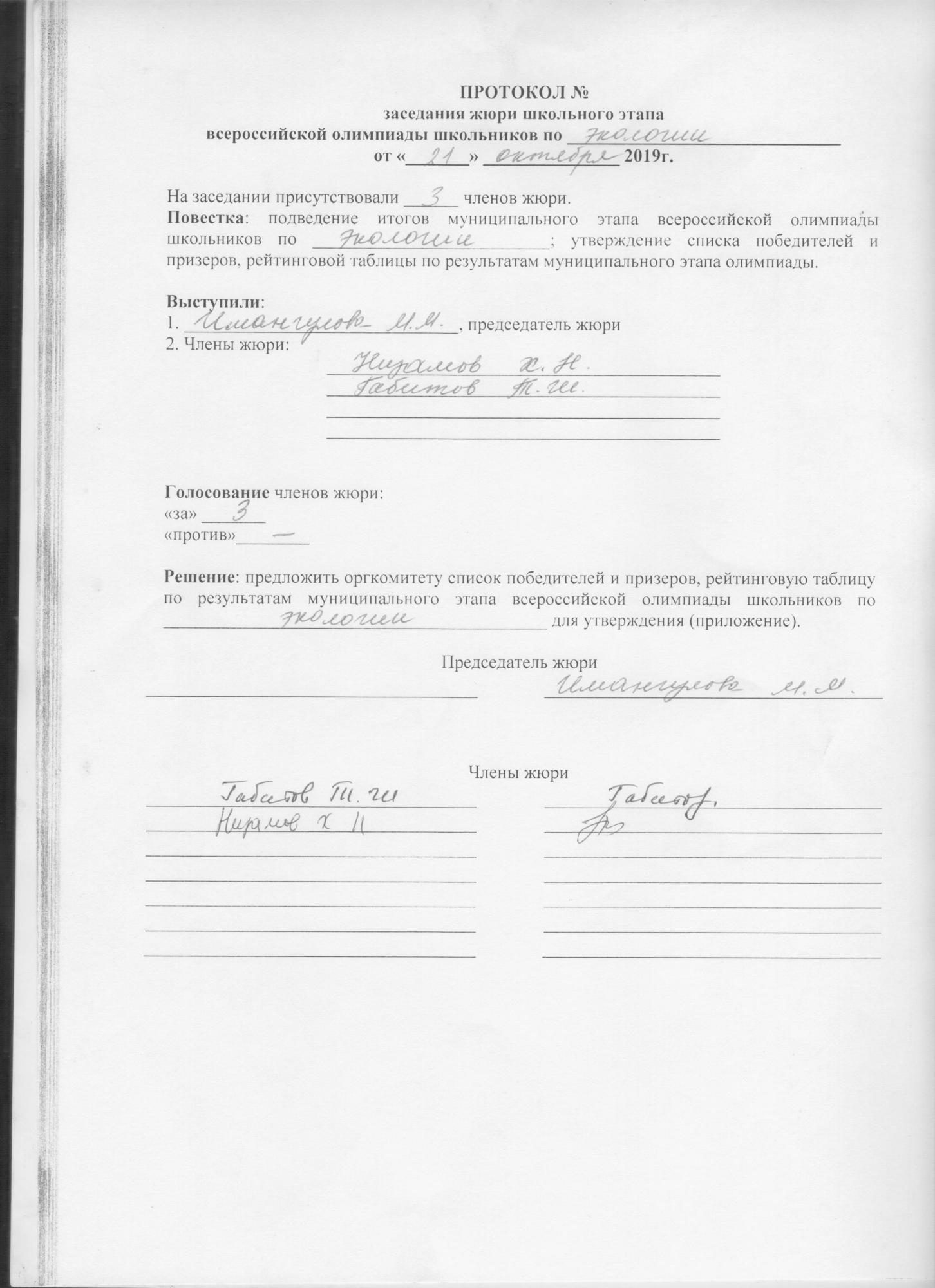 Протокол заседания жюри по Экологии, МБОУ СОШ с.Кипчак-Аскарово, 2025