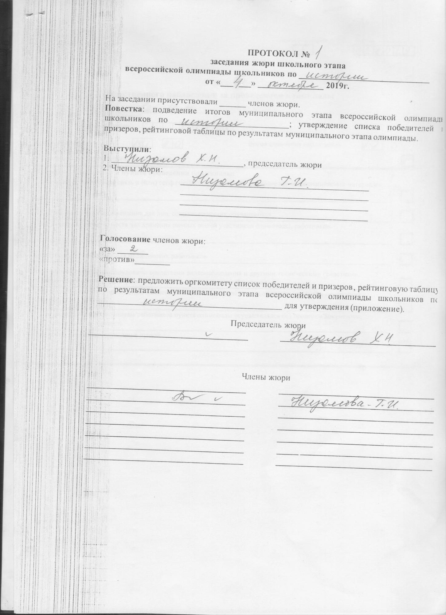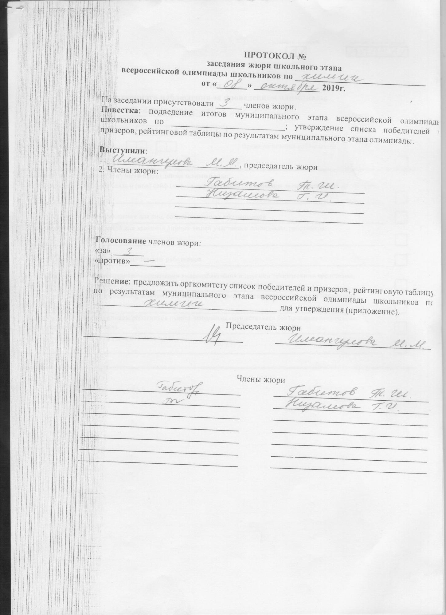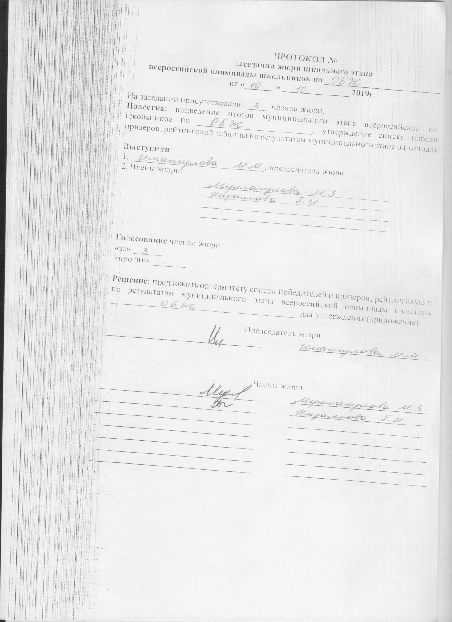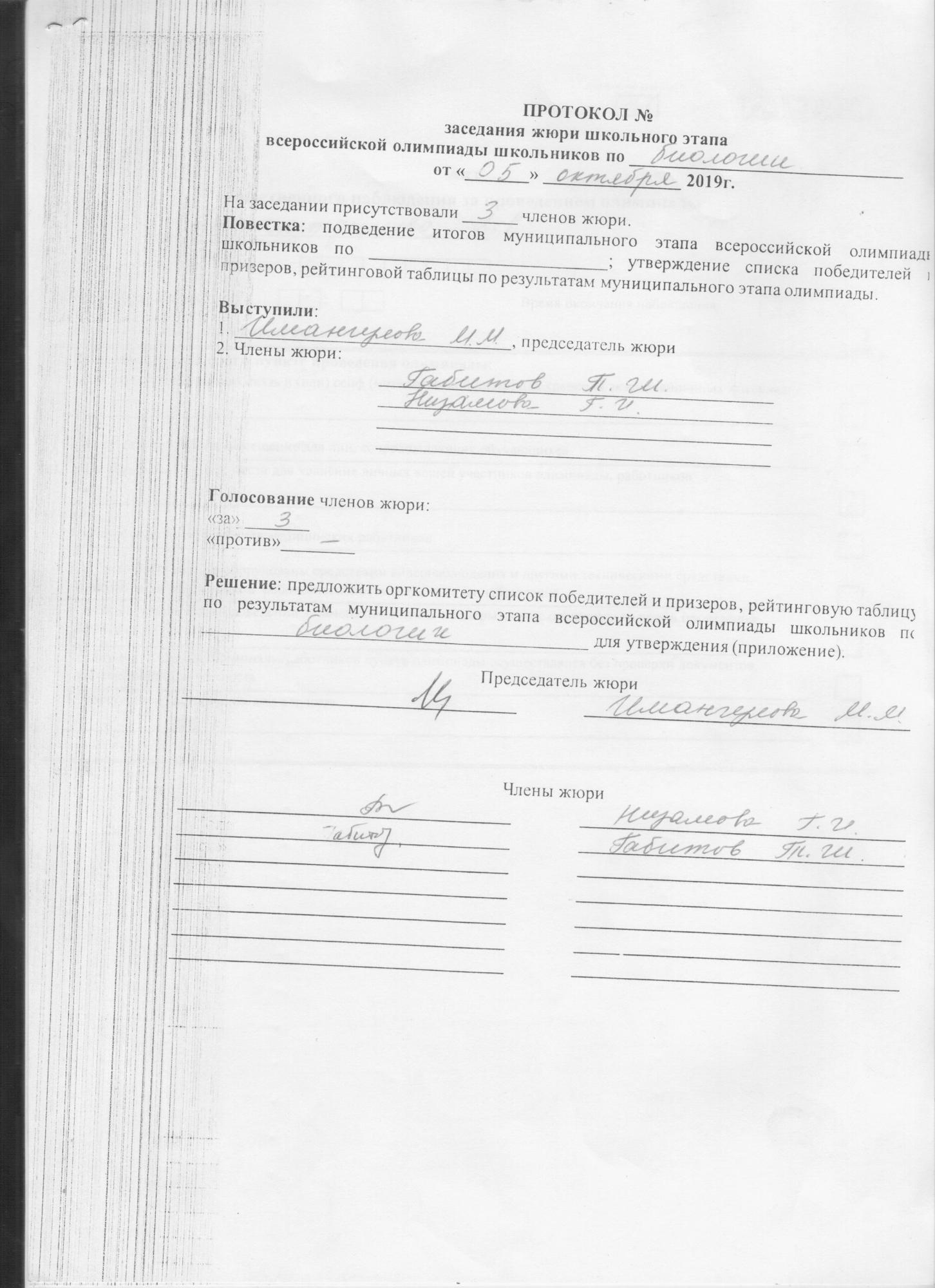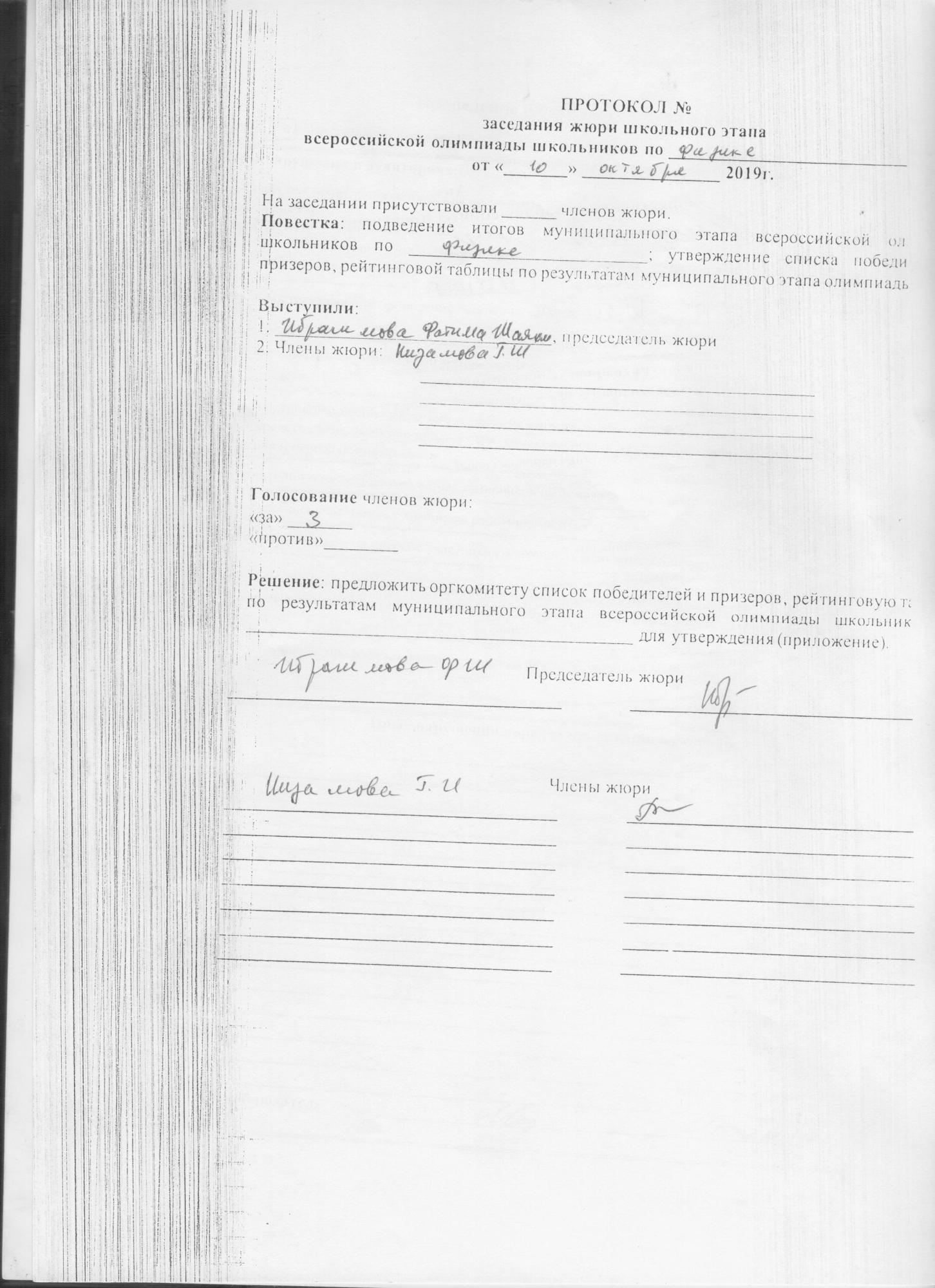 Протокол заедания жюри по Физике. МБОУ СОШ с.Кипчак-Аскарово