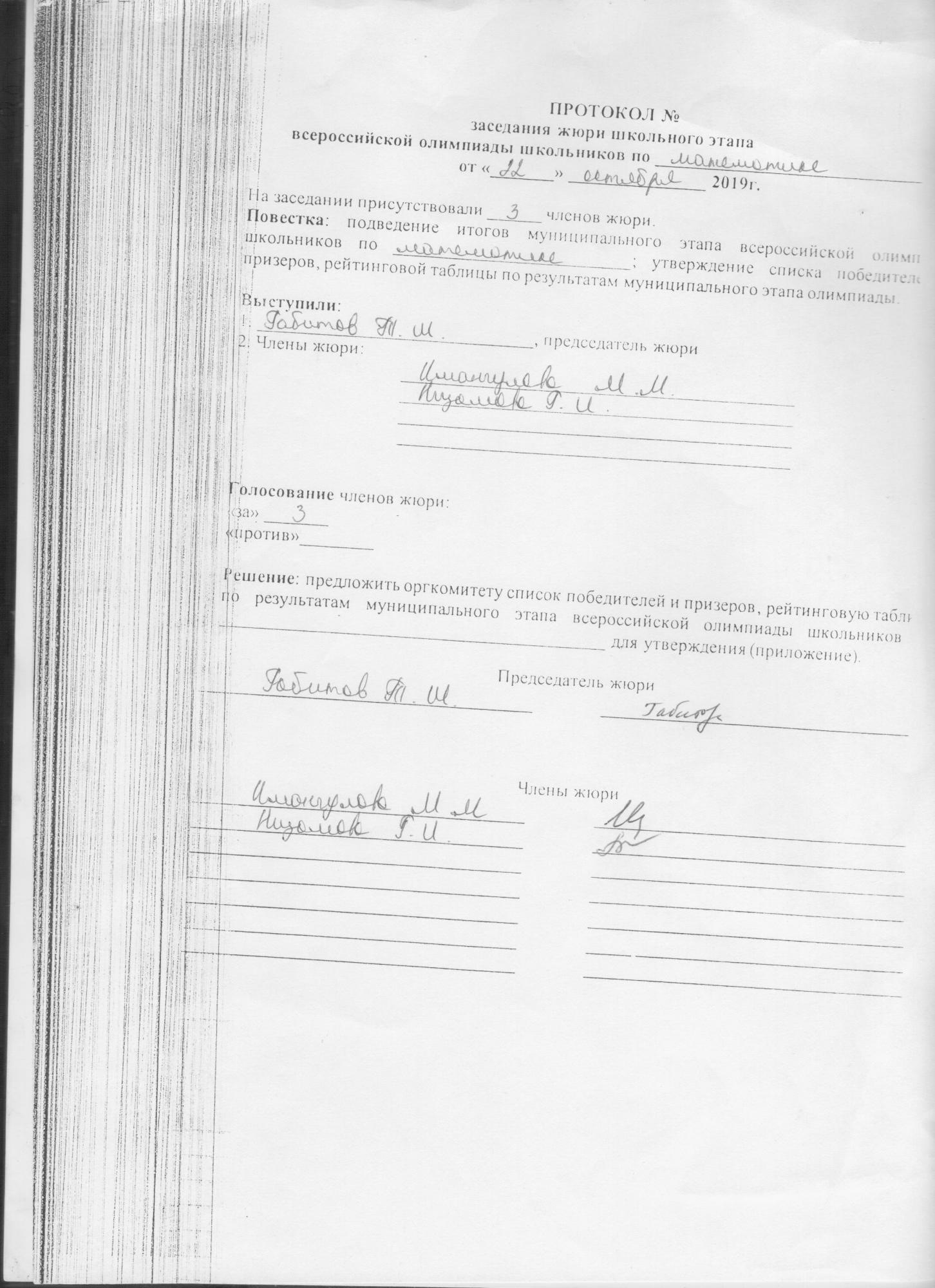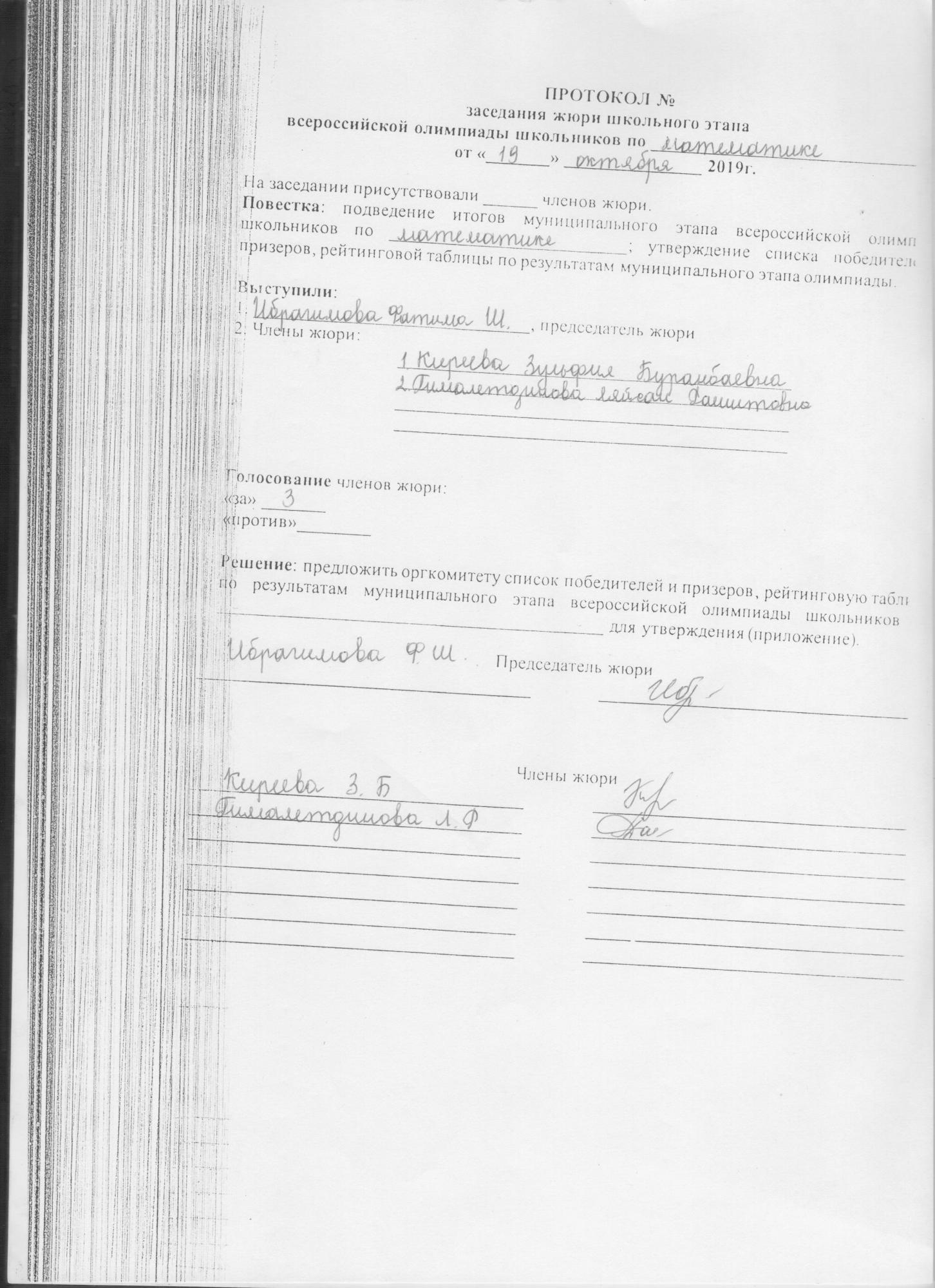Протокол заседаний жюри по Математике. МБОУ СОШ с.Кипчак-Аскарово