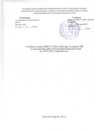 Учебные планы 1-11 классов в МБОУ СОШ с.Кипчак-Аскарово на 2024-2025 уч.год